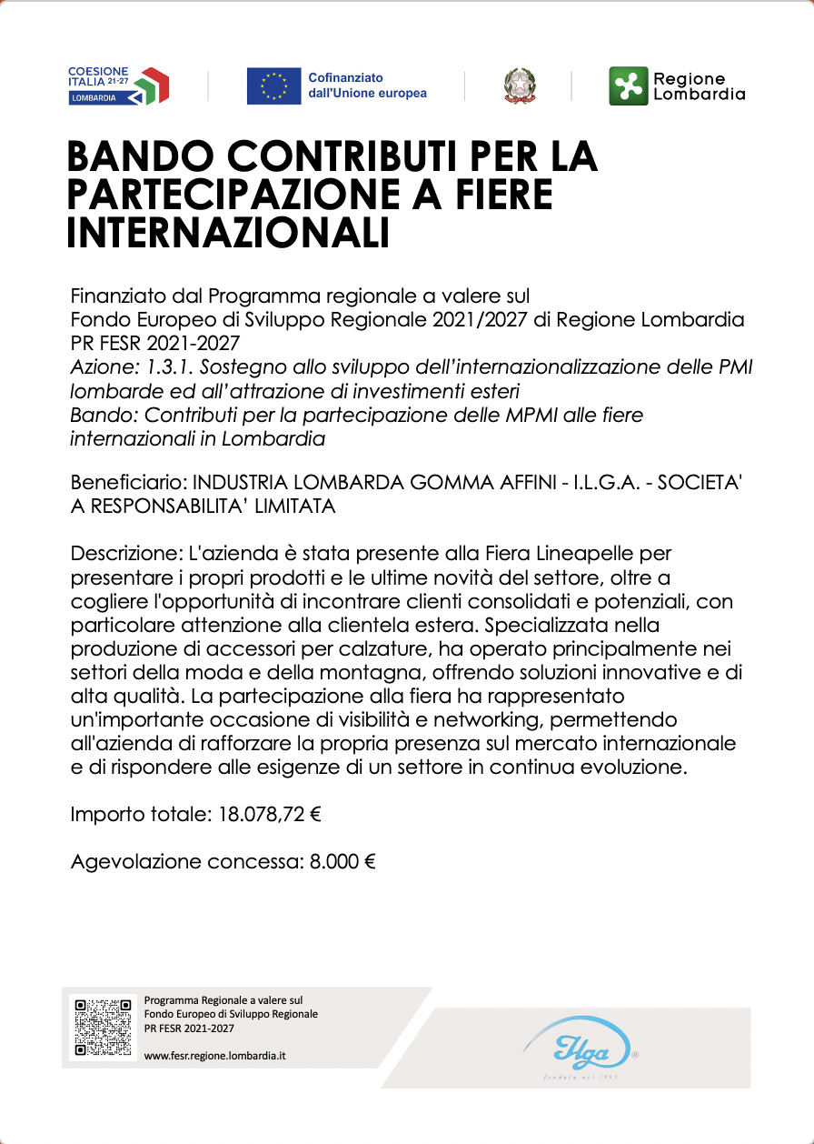 Beneficiario: INDUSTRIA LOMBARDA GOMMA AFFINI – I.L.G.A. – SOCIETA’ A RESPONSABILITA’ LIMITATA